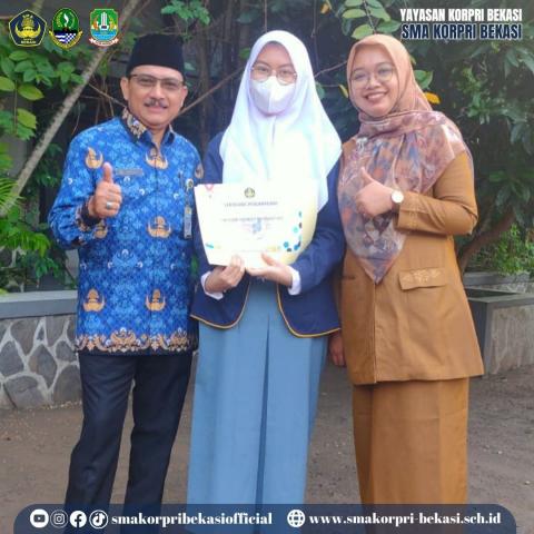 “Selamat kepada ananda Natasha Arsanty Widyahapsari, perwakilan dari SMA KORPRI Bekasi yang berhasil masuk ke OSN tingkat Nasional 2023 untuk bidang Kebumian mewakili Kota Bekasi dan Provinsi Jawa Barat,” ungkap Kepala SMA Korpri Bekasi Drs.Hery Sujiyanto, M.Pd dengan penuh bangga kepada siswinya.